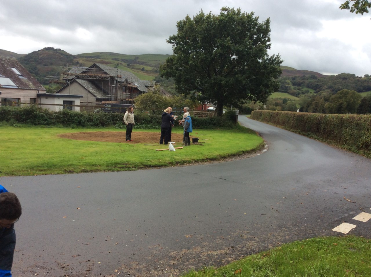 After much effort expended on the ground works, the seeds were scattered, stamped into the ground and the areas cordoned off. The plug plants were carefully planted on the opposite area of land and into the verge on the way down towards Low Lorton.